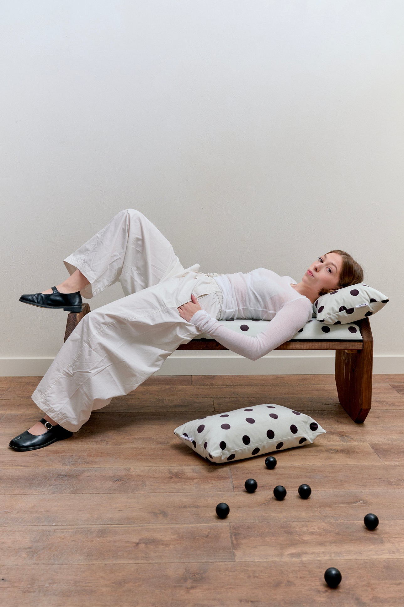 Le banc LÉON, c'est l'histoire d'une belle collaboration ! Simon l'a façonné de ses mains, tandis que Julien Lavoine Charpentiers nous a fourni un bois de récupération travaillé avec soin. Vernis et prêt à briller, il accueille une galette moelleuse en mousse, habillée de notre tissu à pois disponible en trois teintes gourmandes. Compact et malin (46 x 119 x 46 cm), il trouve sa place partout, du coin salon à l'entrée.