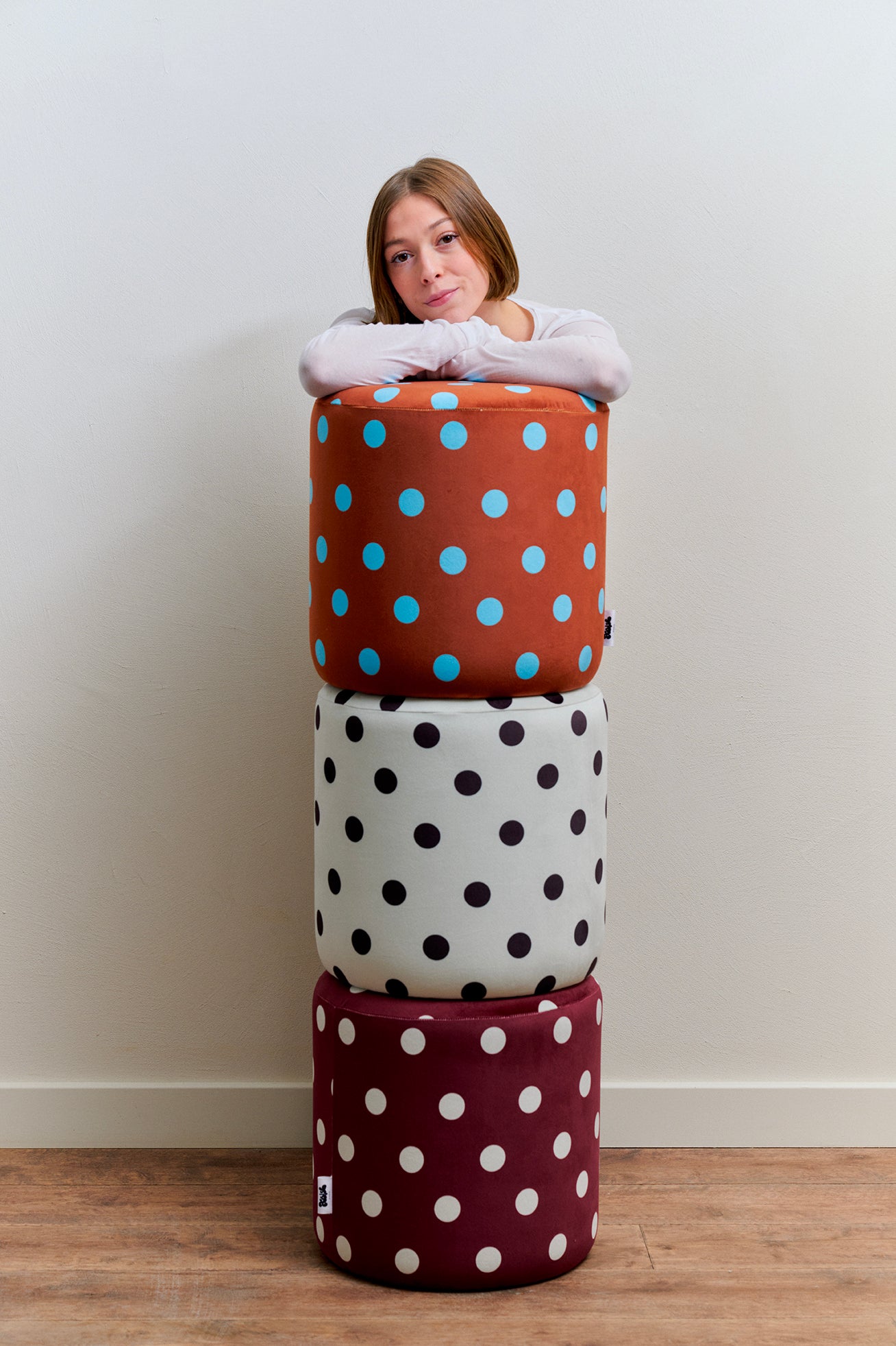 Le pouf DAN petit format est confectionné intégralement à la main dans notre atelier. Il est tapissé d'un velours ras aux finitions impeccables, disponible en trois coloris. Ses dimensions compactes (36 cm de diamètre, 35 cm de hauteur) en font un élément fonctionnel adapté à multiples usages : repose-pieds discret, assise d'appoint près d'une table basse, complément de chambre ou accessoire de chevet. Une pièce qui égaye tous les espaces de vie.